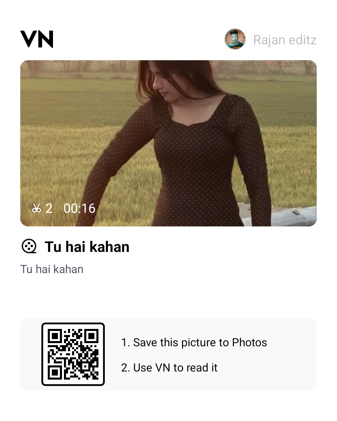 Strategic Hashtags: Use relevant tags to reach the right audience: #TuHaiKahaan #KKForever #SadAesthetic #VNTemplates #MemoryReel #vnqrcodes.