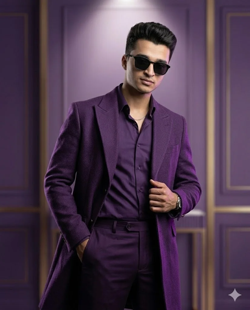 Traditional black and navy suits are classic, but the Royal Purple Suit trend is all about standing out with confidence. This prompt is designed for social media influencers and creators who want a vibrant yet sophisticated look.