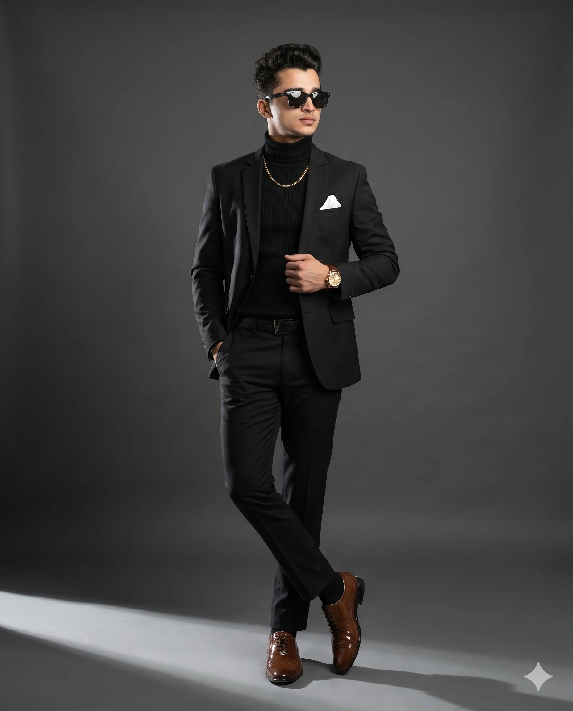 The Outfit: Change the "black trench coat" to a "silver metallic puffer" or a "leather biker jacket."